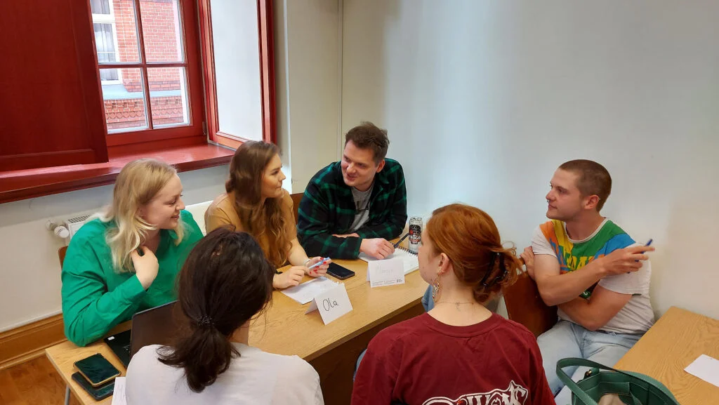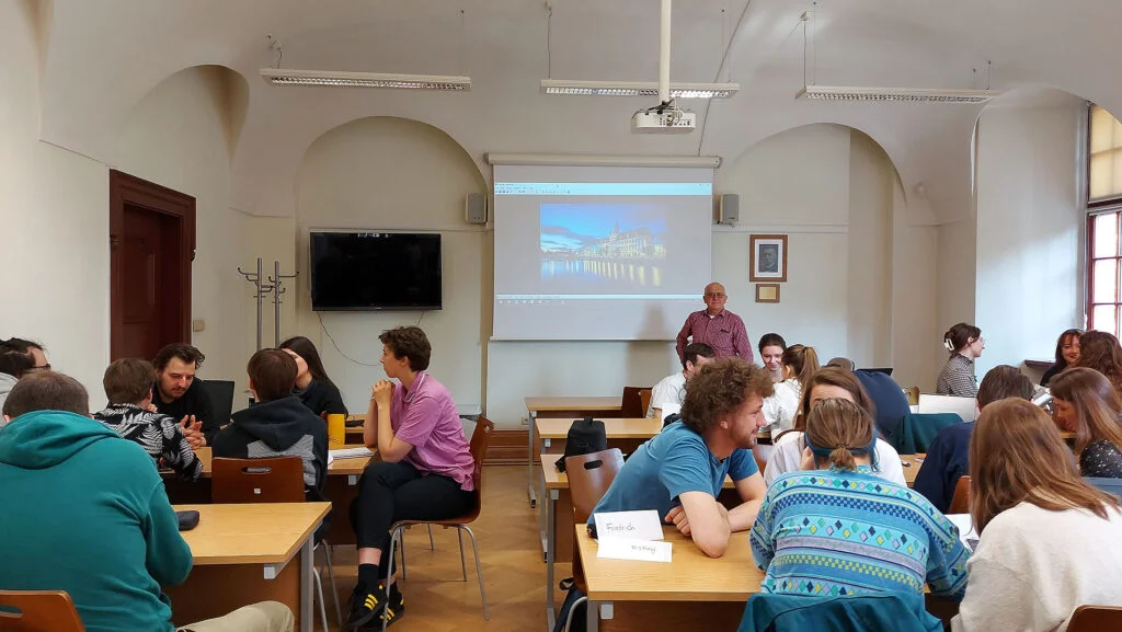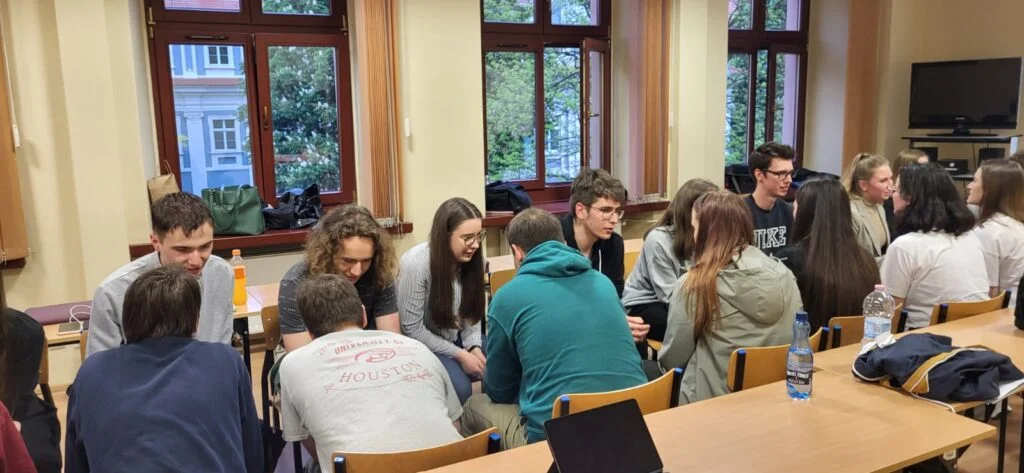 We wtorek 16 maja 2023 r. gościliśmy na naszych zajęciach języka niemieckiego (poziom B2I – mg Z. Gdowski oraz poziom B2II – mgr B. Muszyńska) grupę 16 osób, niemieckich studentek i studentów Uniwersytetu w Lipsku. Studenci gościli na UWr na zaproszenie Szkoły Języka Polskiego. Nasi studenci przygotowali dwie ciekawe prezentacje, po których wywiązała się krótka dyskusja. W ramach naszych zajęć języka niemieckiego brali oni czynny udział w realizacji programu spotkania, wspomagali aktywnie konwersację w języku niemieckim, uzupełniając naszą wiedzę praktyczną o Niemczech. Ich dużym atutem była też znajomość (w różnym stopniu) języka polskiego, którego uczą się w Lipsku na lektoracie języka polskiego.